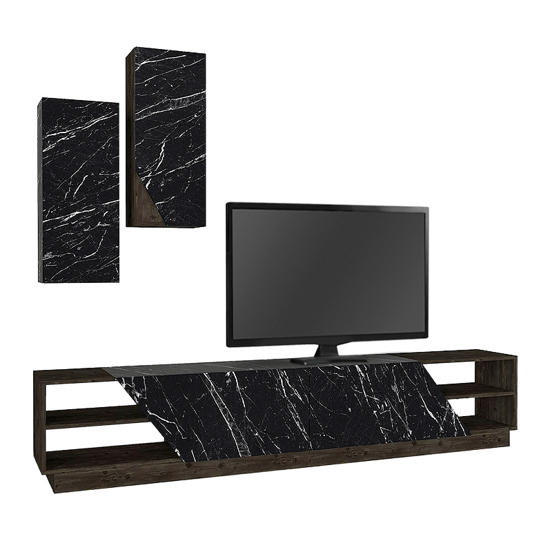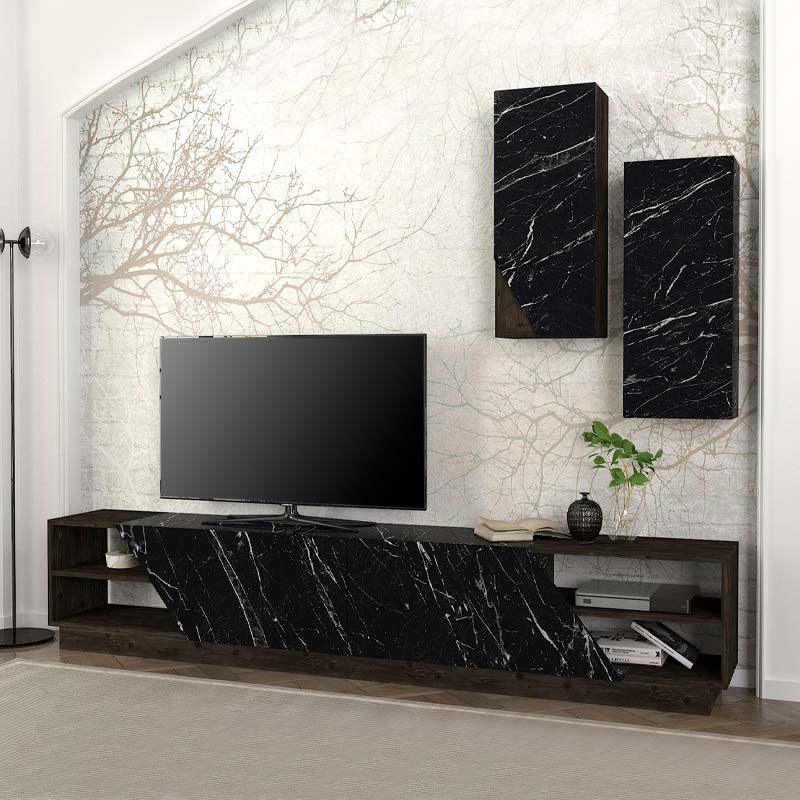 Σύνθεση τηλεόρασης River χρώμα μαύρο rebab - μαύρο εφέ μαρμάρου 240x36,6x47εκ.