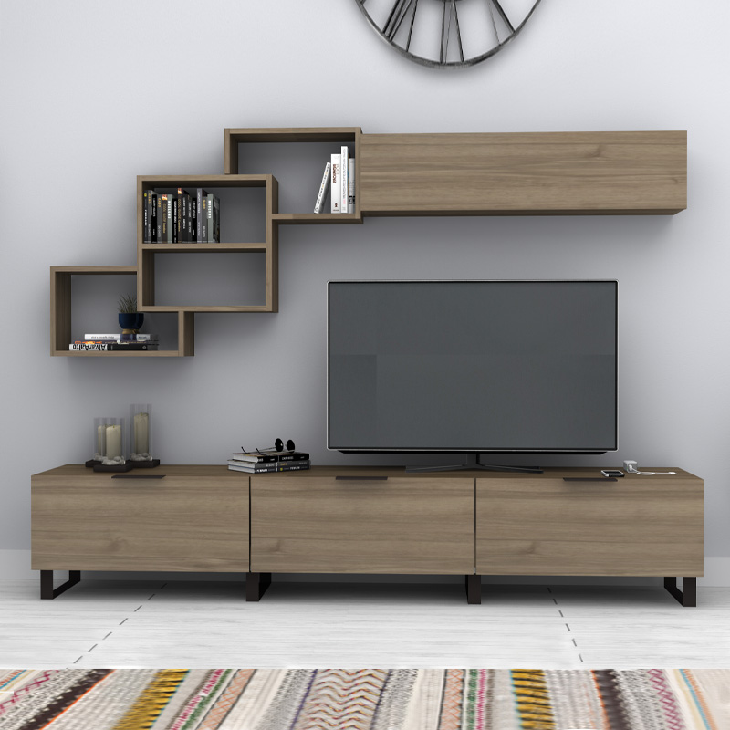 Σύνθεση τηλεόρασης Heydar χρώμα καρυδί 210x35x40εκ.