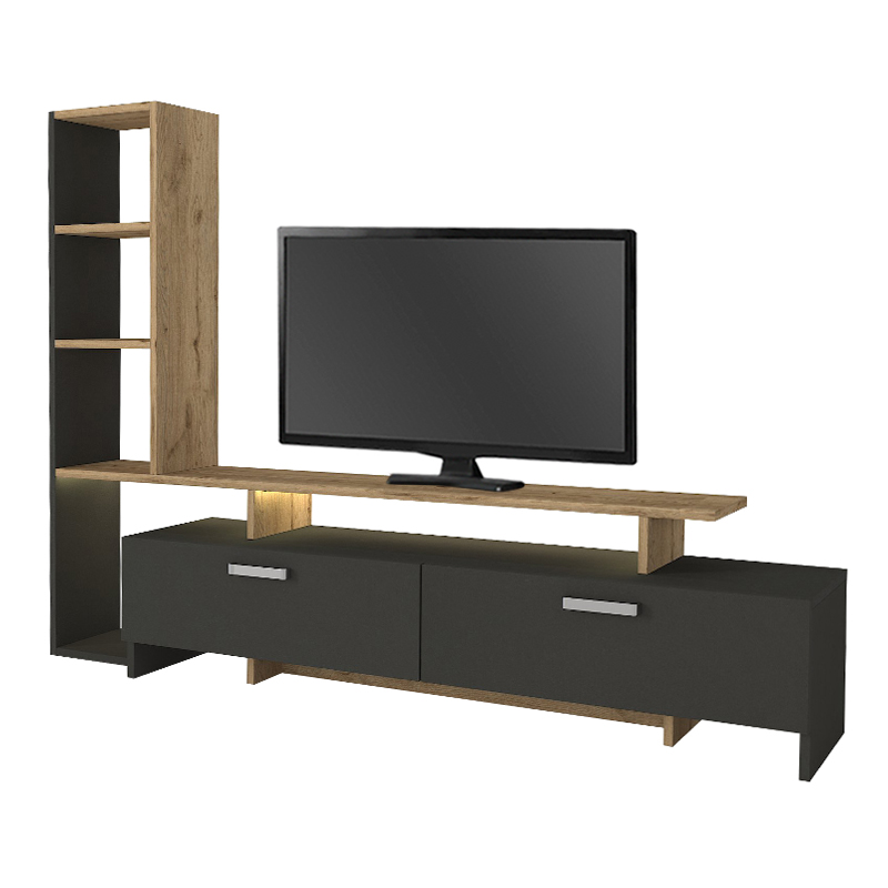 Σύνθεση τηλεόρασης Simal με LED χρώμα ανθρακί - sepet oak 168,2x31,3x120εκ.
