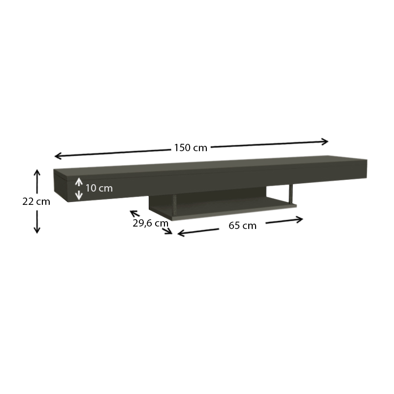 Έπιπλο τηλεόρασης επιτοίχιο Albares με LED χρώμα ανθρακί 150x29,6x22εκ.