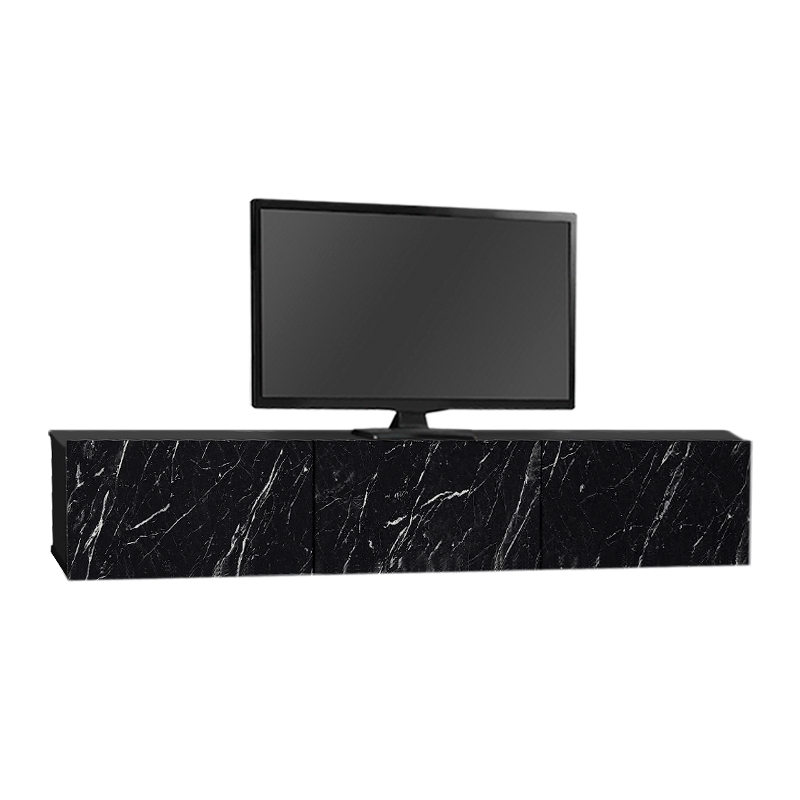 Έπιπλο τηλεόρασης επιτοίχιο Damla με LED χρώμα μαύρο εφέ μαρμάρου 180x29,5x29,5εκ.