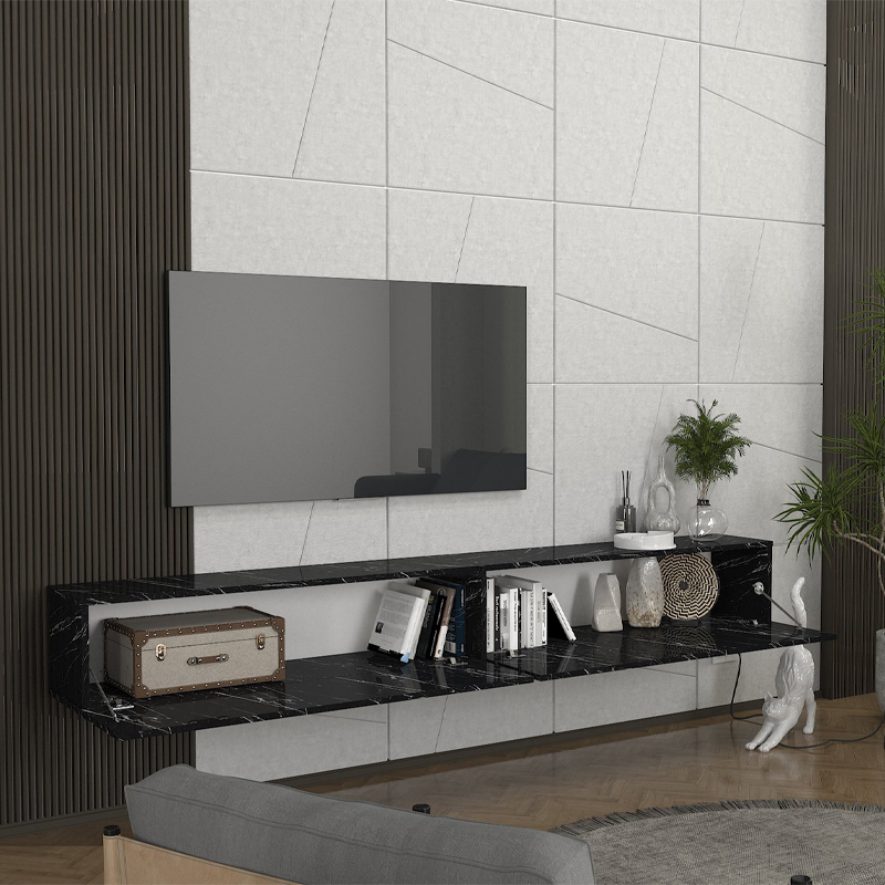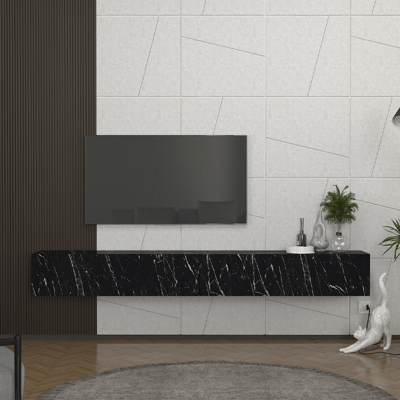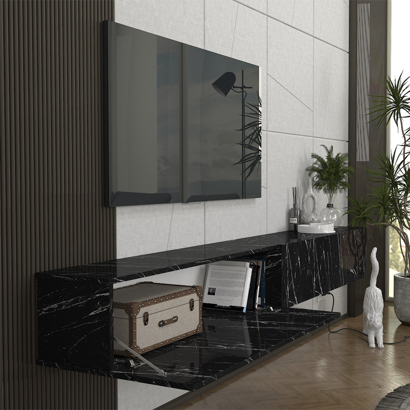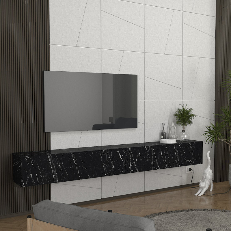 Έπιπλο τηλεόρασης επιτοίχιο Espanse χρώμα μαύρο εφέ μαρμάρου 241,8x31,7x30εκ.