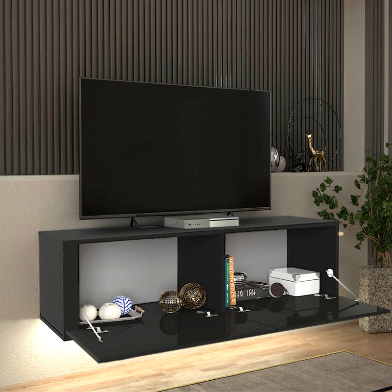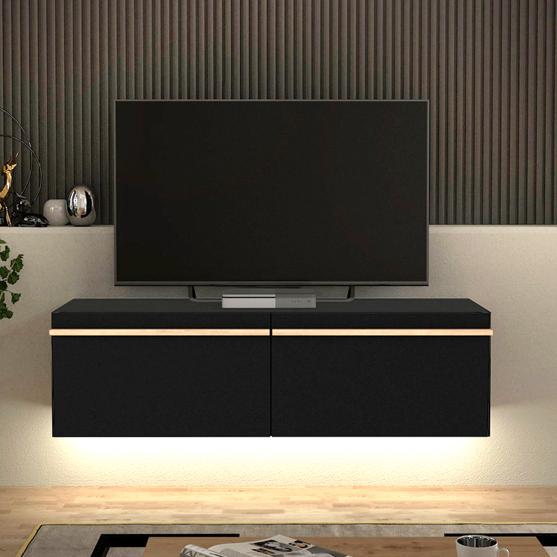 Έπιπλο τηλεόρασης επιτοίχιο Morel με LED χρώμα μαύρο 140x41,8x40εκ.