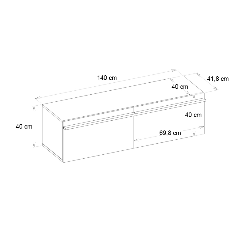 - Διαστάσεις: Μήκος 140 x Βάθος 41,8 x Ύψος 40 εκ.