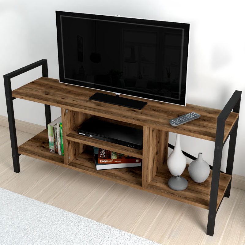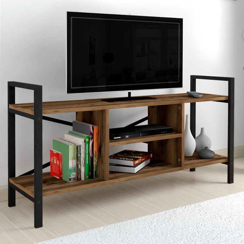 Έπιπλο τηλεόρασης Santana μεταλλικό - μελαμίνης χρώμα μαύρο - καπνιστή καρυδιά 120x35x61εκ.