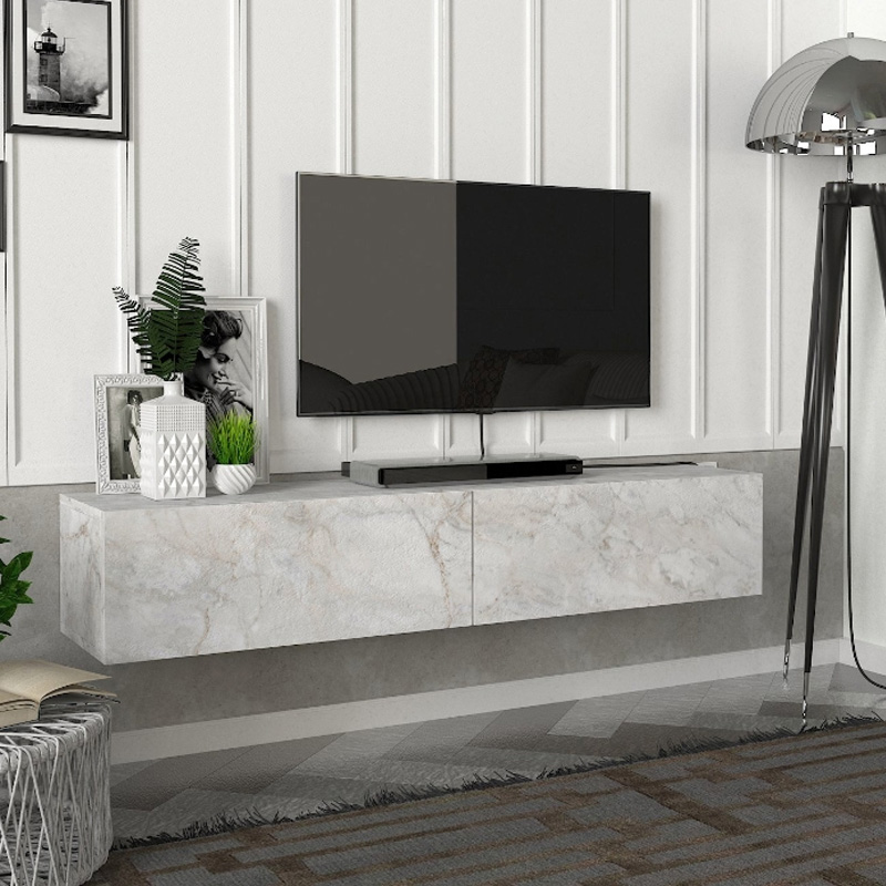 Έπιπλο τηλεόρασης επιτοίχιο Aristo με LED χρώμα λευκό εφέ μαρμάρου 135x31,6x25εκ.