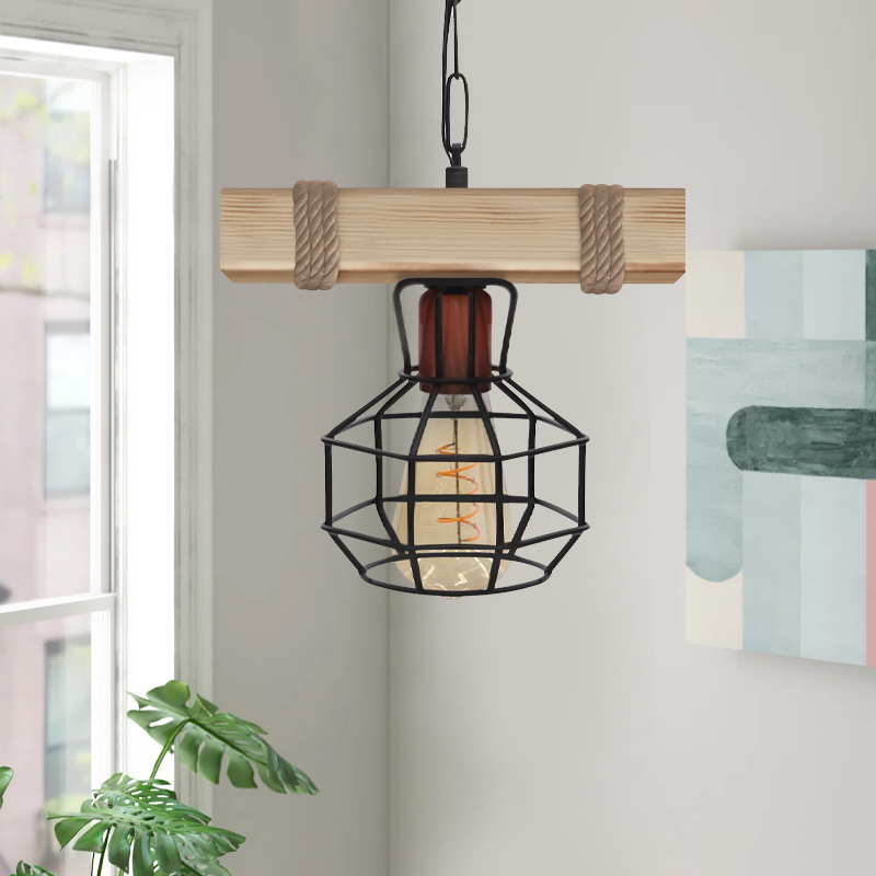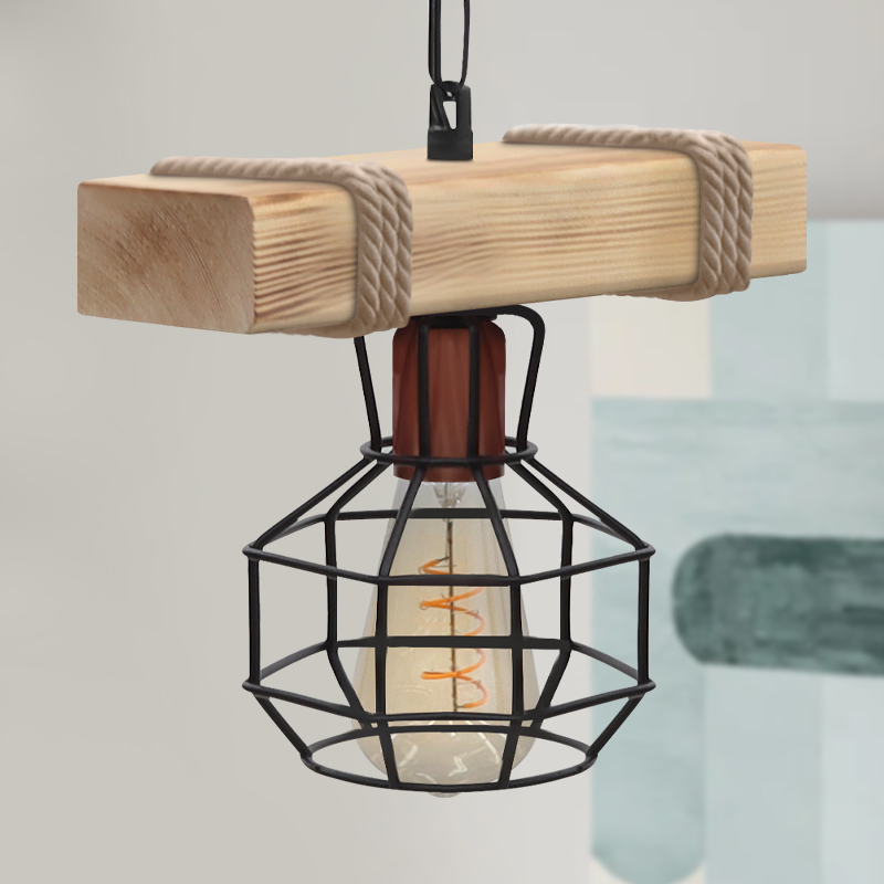 Φωτιστικό οροφής Lumenia E27 ξύλινο - μεταλλικό μονόφωτο χρώμα φυσικό - μαύρο 25x14x80εκ.