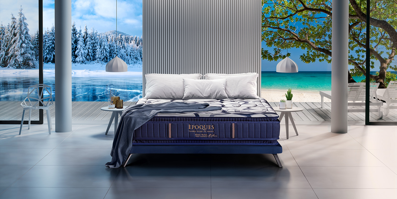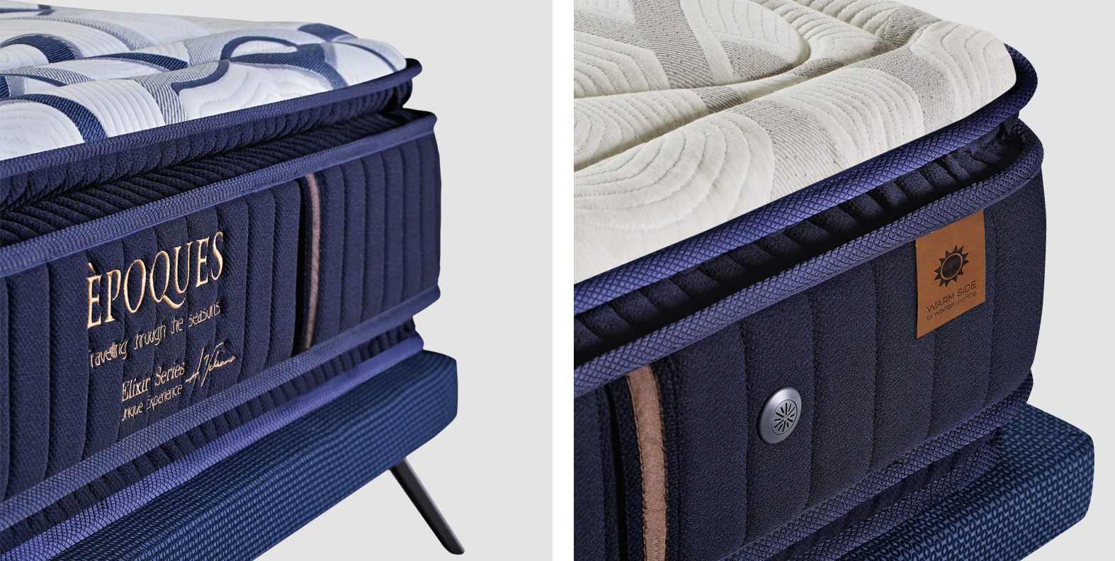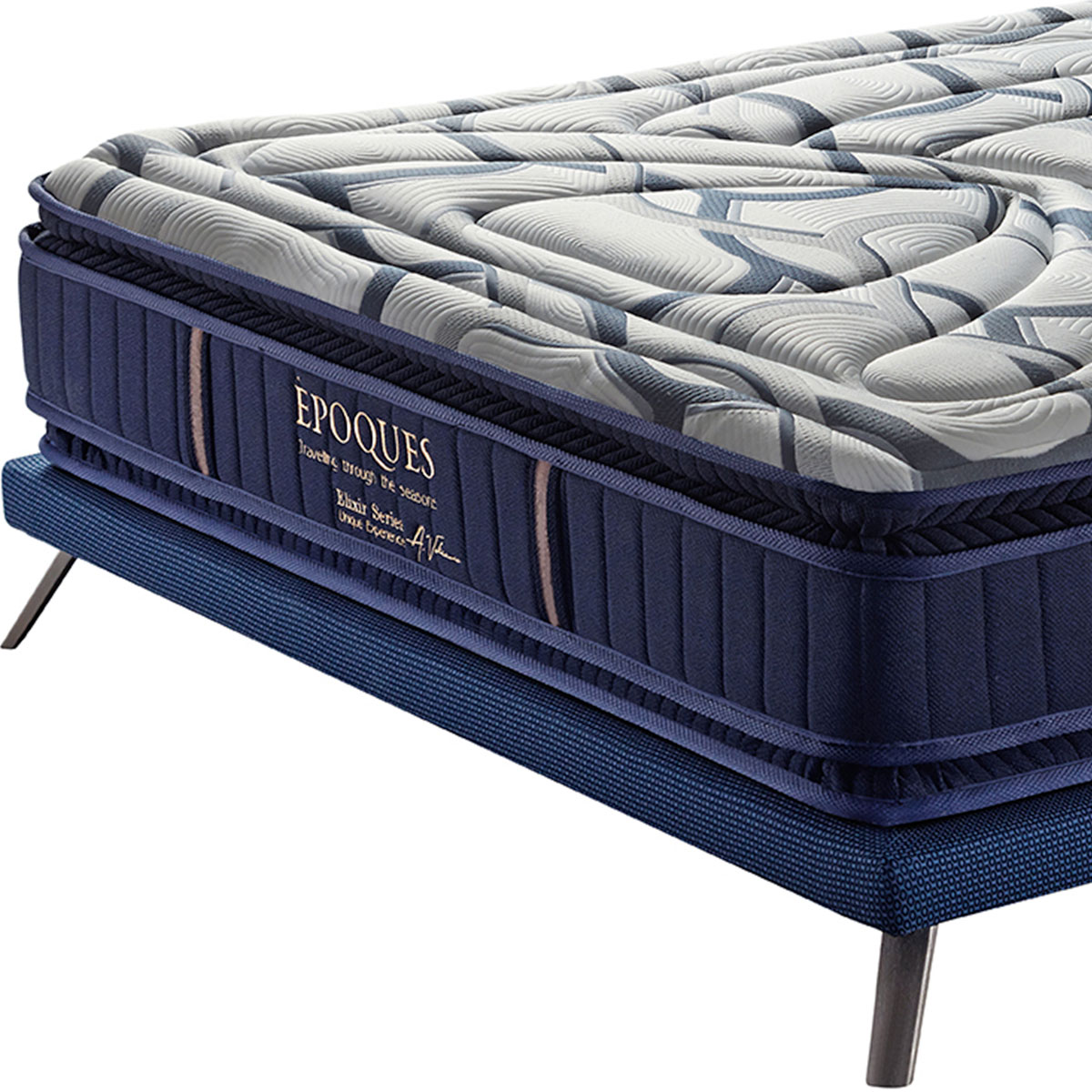 Υπάρχει ιδανικό στρώμα για κάθε εποχή; Η σωστή θερμοκρασία παίζει σημαντικό ρόλο για τον καλό ύπνο. Το στρώμα Epoques 2 εποχών της σειράς Elixir διαθέτει ενσωματωμένα ανωστρώματα PILLOW TOP και στις 2 πλευρές του, επενδυμένα με διαφορετικό ύφασμα. Κάθε ύφασμα διαθέτει ιδιότητες που βοηθούν στη διατήρηση της σωστής θερμοκρασίας ανάλογα με την εποχή, ενώ, επιπλέον, τα εσωτερικά υλικά σύγχρονης τεχνολογίας συμβάλλουν ακόμη περισσότερο σε αυτό το αποτέλεσμα.