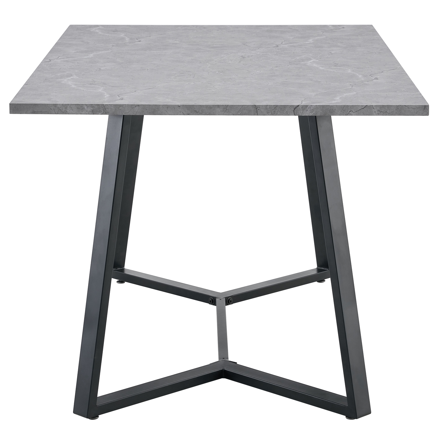 Κατασκευασμένο από μοριοσανίδα υψηλής ποιότητας με γκρι μαρμάρινο φινίρισμα και ανθεκτικό μαύρο μέταλλο, το τραπέζι εξασφαλίζει σταθερότητα και αντοχή στη χρήση. Τα υλικά του είναι ανθεκτικά στις καθημερινές φθορές.