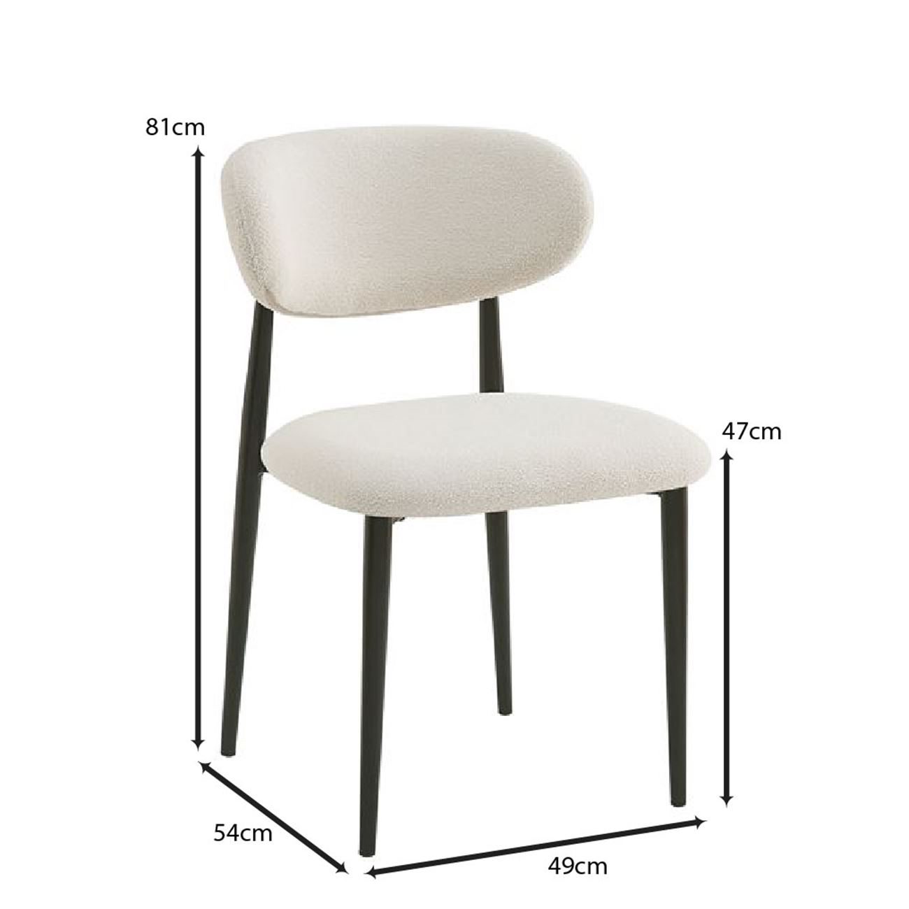 POINT Καρέκλα Τραπεζαρίας Μέταλλο Βαφή Μαύρο, Teddy Ύφασμα Άσπρο