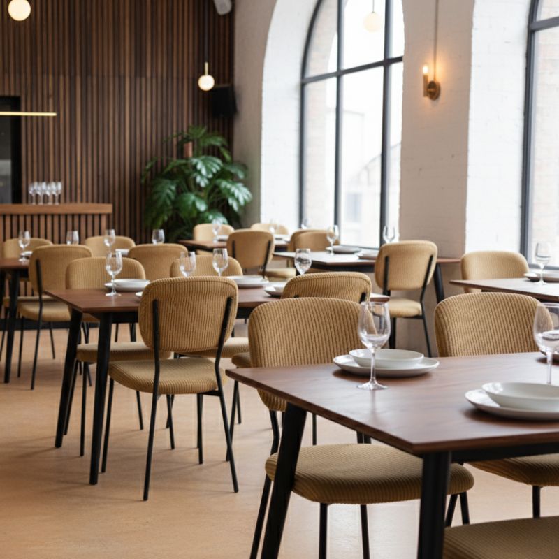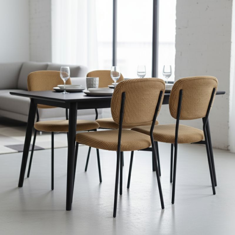 Καρέκλα τραπεζαρίας Kevin μουσταρδί ύφασμα - μεταλλικό μαύρο πόδι 48x51x87εκ.