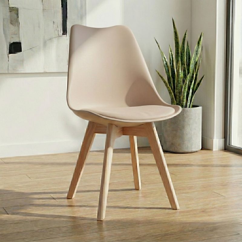 Καρέκλα τραπεζαρίας Viva PP - PU cappuccino - ξύλινο φυσικό πόδι 48,5x54x80εκ.