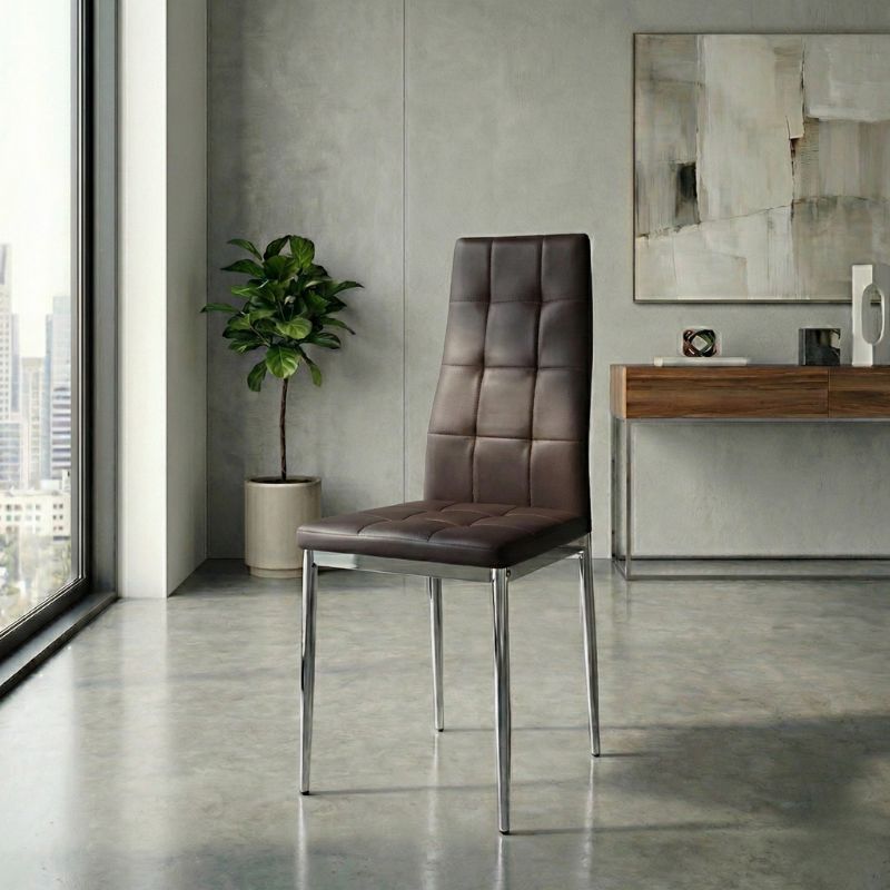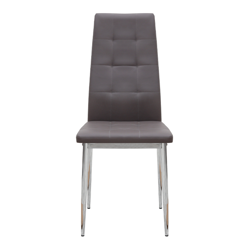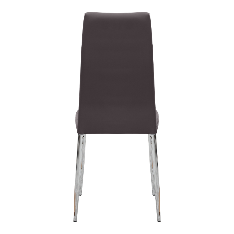 Η καρέκλα Rosa διαθέτει κάθισμα από τεχνόδερμα PU σε καφέ χρώμα και μεταλλικά πόδια χρωμίου, προσφέροντας αντοχή και πρακτικότητα στην καθημερινή χρήση. Ο λιτός, μοντέρνος σχεδιασμός της την κάνει κατάλληλη για κάθε τύπο τραπεζαρίας, οικιακής ή επαγγελματικής, προσφέροντας μια διακριτική αλλά κομψή παρουσία στον χώρο.