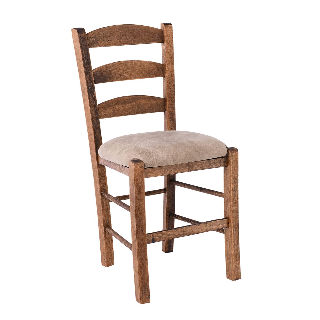 ΣΚΥΡΟΣ Καρέκλα Οξιά Βαφή Εμποτισμού Καρυδί, Κάθισμα Suede Μπεζ