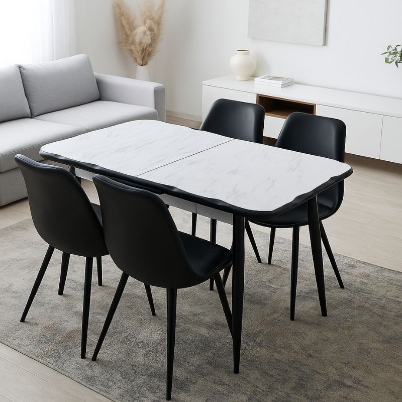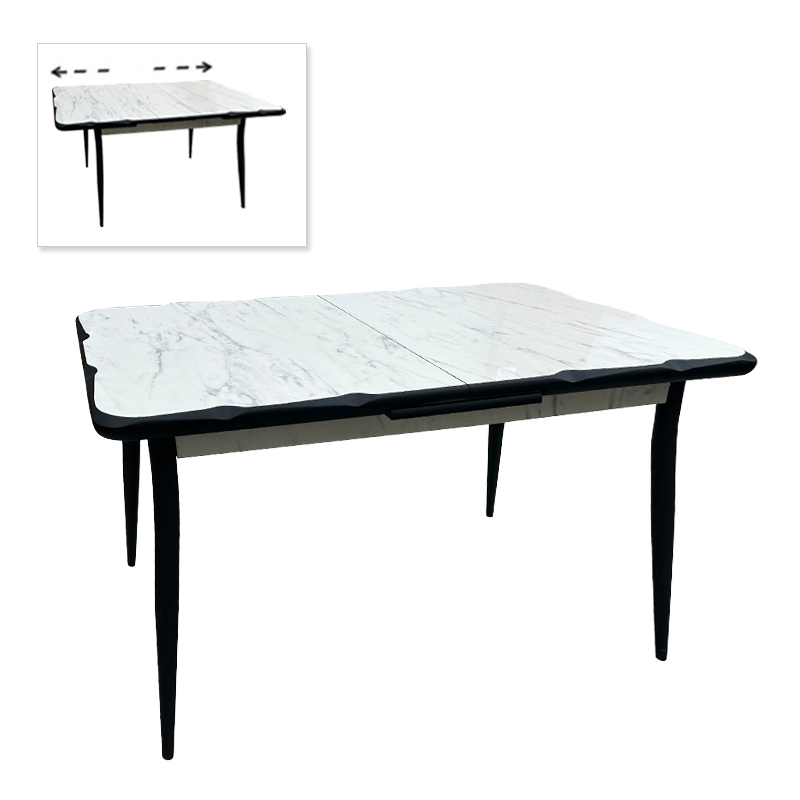 Τραπέζι Karen επεκτεινόμενο χρώμα λευκό εφέ μαρμάρου - μαύρο 130/160x80x75εκ.