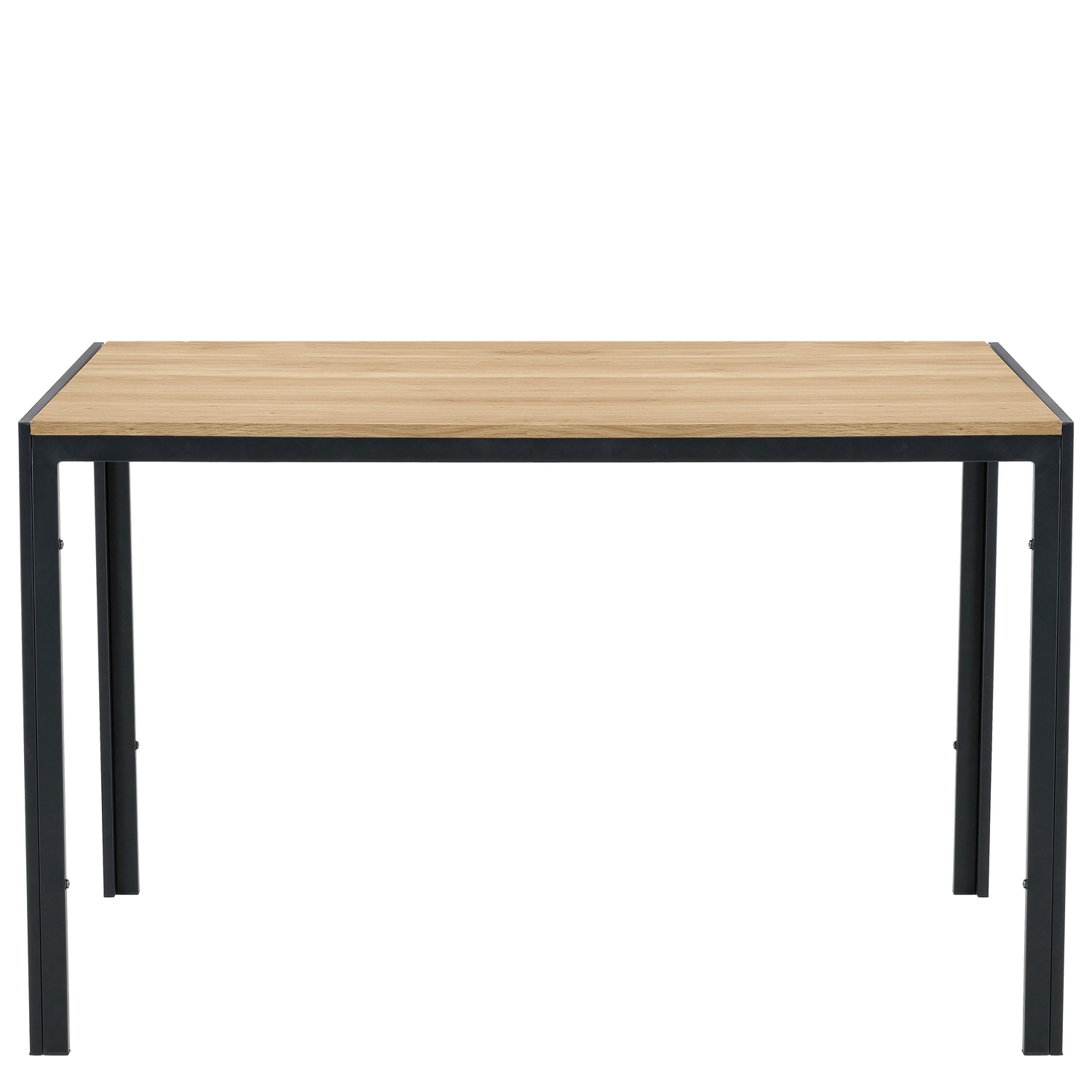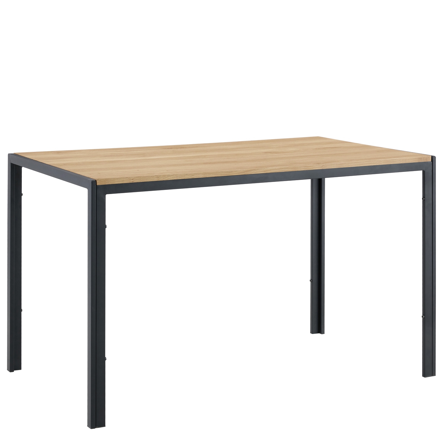 Κατασκευασμένο από μοριοσανίδα υψηλής ποιότητας με φινίρισμα Sonoma και ανθεκτικό μαύρο μέταλλο, το τραπέζι εξασφαλίζει σταθερότητα και αντοχή στη χρήση. Τα υλικά του είναι ανθεκτικά στις καθημερινές φθορές.