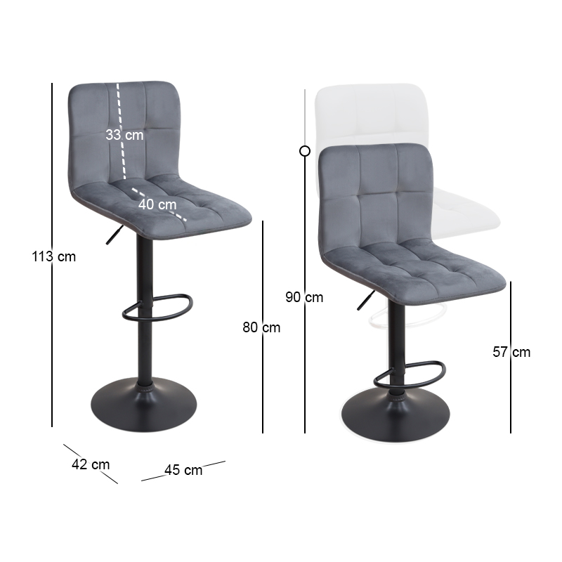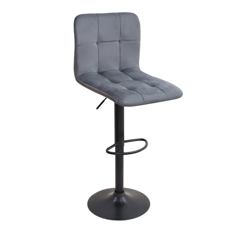 Σκαμπό μπαρ Carmelo με ρυθμιζόμενο ύψος βελούδο γκρι - βάση μαύρο ματ 45x42x90/113εκ.