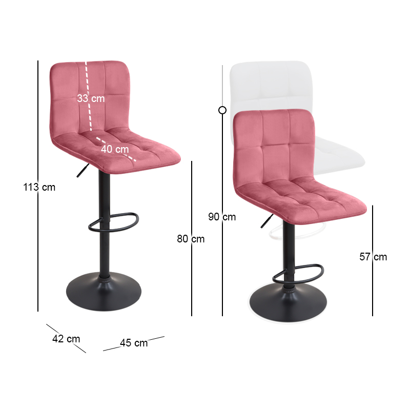 Σκαμπό μπαρ Carmelo με ρυθμιζόμενο ύψος βελούδο σάπιο μήλο - βάση μαύρο ματ 45x42x90/113εκ.