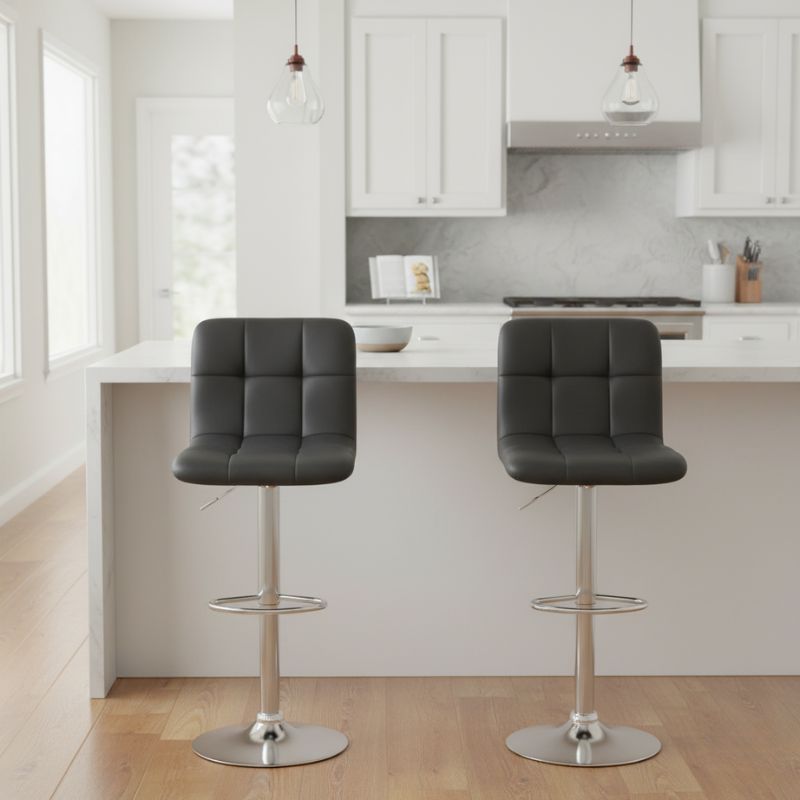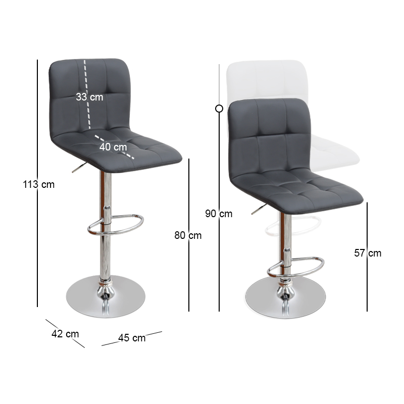 Σκαμπό μπαρ Carmelo με ρυθμιζόμενο ύψος PU μαύρο - βάση χρωμίου 45x42x90/113εκ.