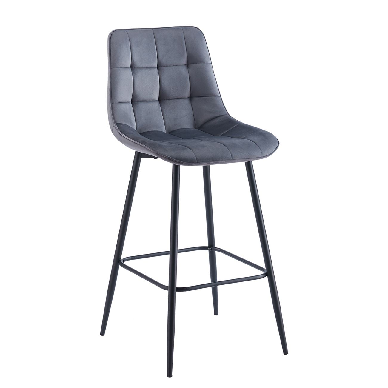 MYRIAM Σκαμπό BAR, Μέταλλο Βαφή Μαύρο, Ύφασμα Velure Σκούρο Γκρι