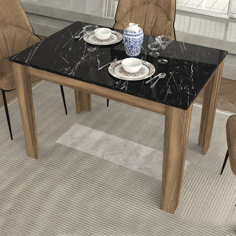 Τραπέζι Darlen χρώμα καρυδί - μαύρο εφέ μαρμάρου 110x72x74εκ.