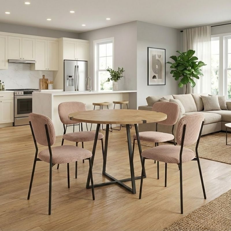 Η τραπεζαρία Rubes - Kevin θα φέρει μία αίσθηση εκλεπτυσμένης κομψότητας στον χώρο σας. Το πλούσιο κοτλέ ύφασμα της καρέκλας χαρίζει ζεστασιά και υφή, ενώ τα μεταλλικά πόδια προσδίδουν μοντέρνο χαρακτήρα και σταθερότητα. Ιδανική επιλογή τόσο για το σπίτι όσο και για επαγγελματικούς χώρους που θέλουν να επικοινωνήσουν ποιότητα και design σε κάθε λεπτομέρεια.