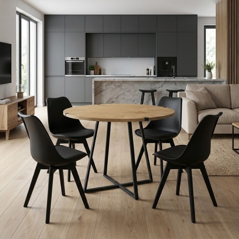 Σετ τραπεζαρία 5τμχ Rubes - Viva χρώμα φυσικό οξιάς - μαύρο Ø100x78εκ.