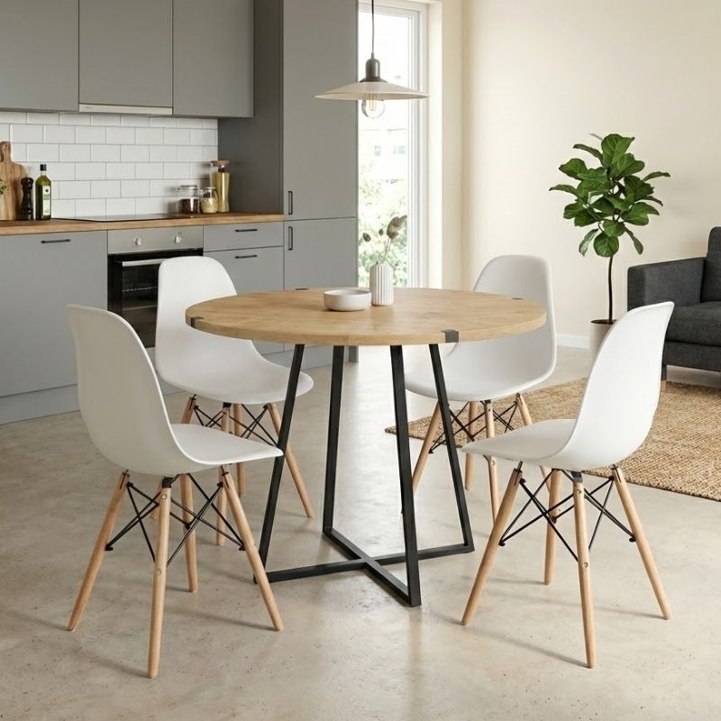 Σετ τραπεζαρία 5τμχ Rubes - Nova χρώμα φυσικό οξιάς - λευκό Ø100x78εκ.