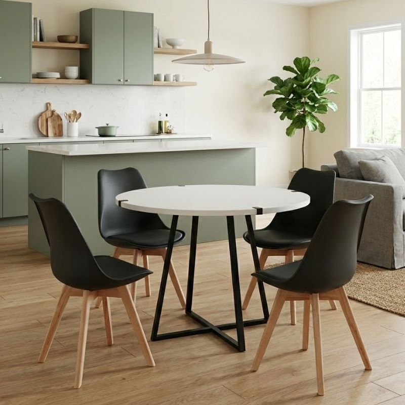 Σετ τραπεζαρία 5τμχ Rubes - Viva χρώμα λευκό - μαύρο Ø100x78εκ.