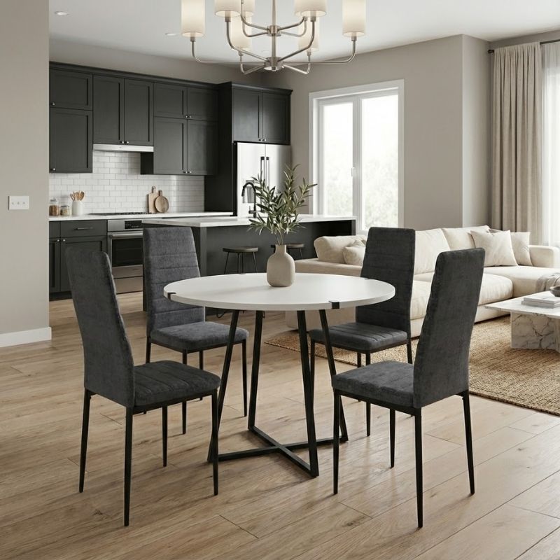 Σετ τραπεζαρία 5τμχ Rubes - Rosa χρώμα λευκό - γκρι Ø100x78εκ.