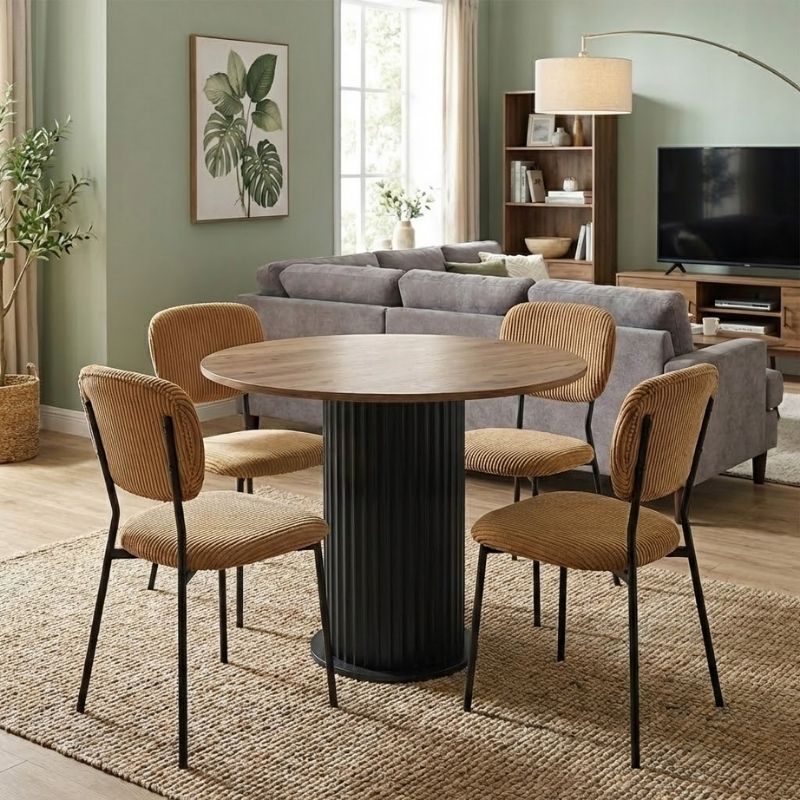 Σετ τραπεζαρία 5τμχ Bohema - Kevin χρώμα μαύρο/sepet oak - μουσταρδί Ø90x77,7εκ.