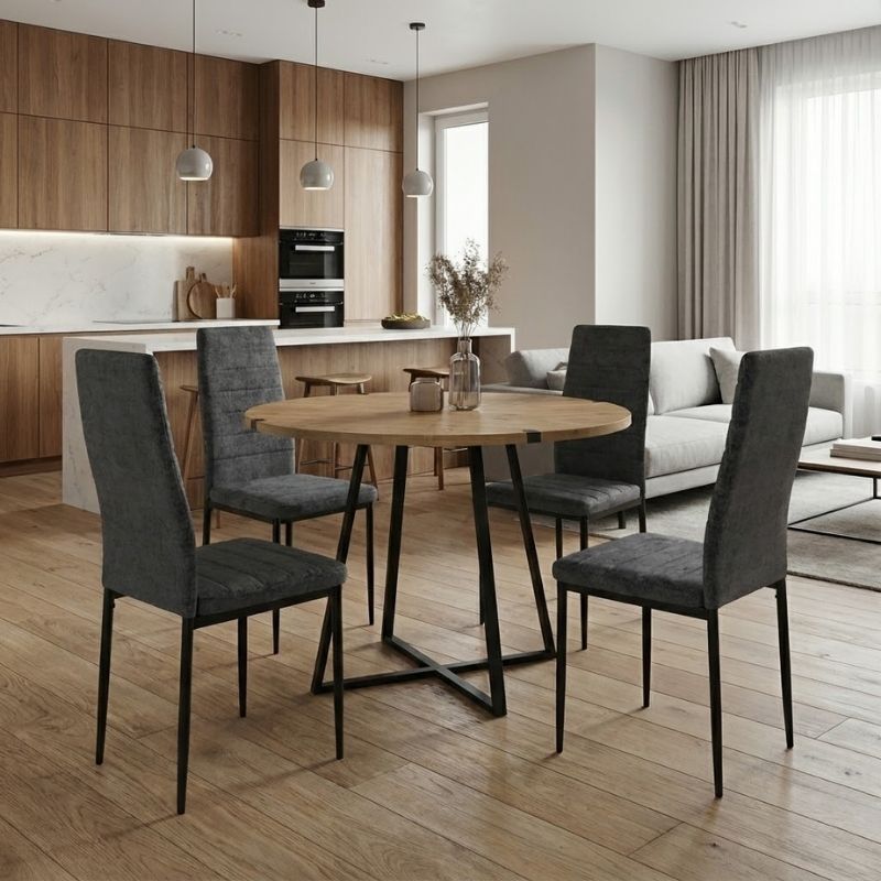 Σετ τραπεζαρία 5τμχ Rubes - Rosa χρώμα φυσικό οξιάς - γκρι Ø100x78εκ.