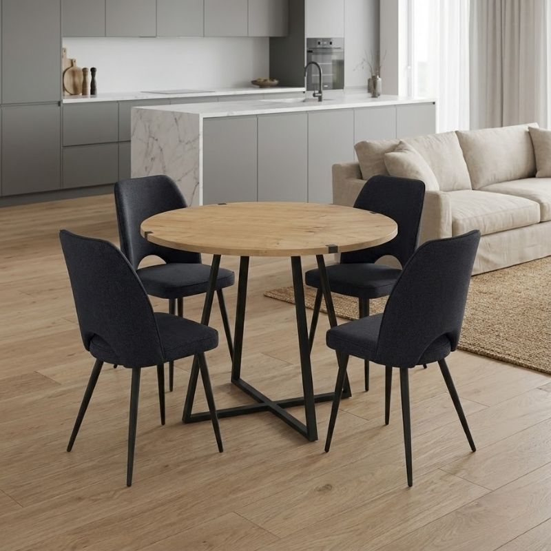 Σετ τραπεζαρία 5τμχ Rubes - Christy χρώμα φυσικό οξιάς - ανθρακί Ø100x78εκ.