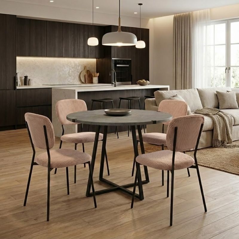 Σετ τραπεζαρία 5τμχ Rubes - Kevin χρώμα γκρι σκυροδέματος - μόκα Ø100x78εκ.