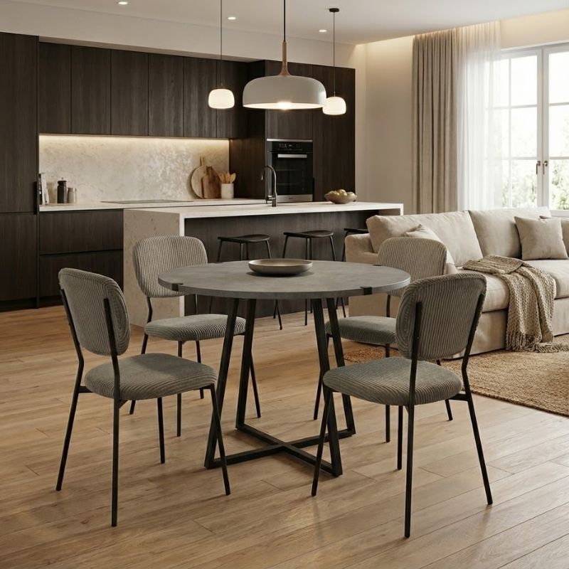 Σετ τραπεζαρία 5τμχ Rubes - Kevin χρώμα γκρι σκυροδέματος - λαδί Ø100x78εκ.