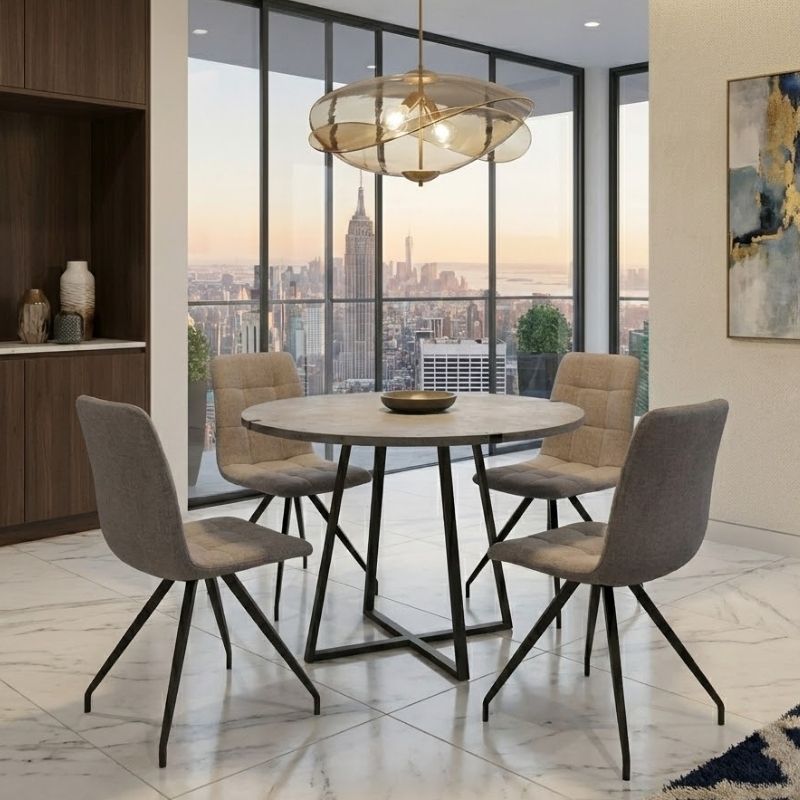 Σετ τραπεζαρία 5τμχ Rubes - Bianca χρώμα γκρι σκυροδέματος - ανοιχτό μπεζ Ø100x78εκ.
