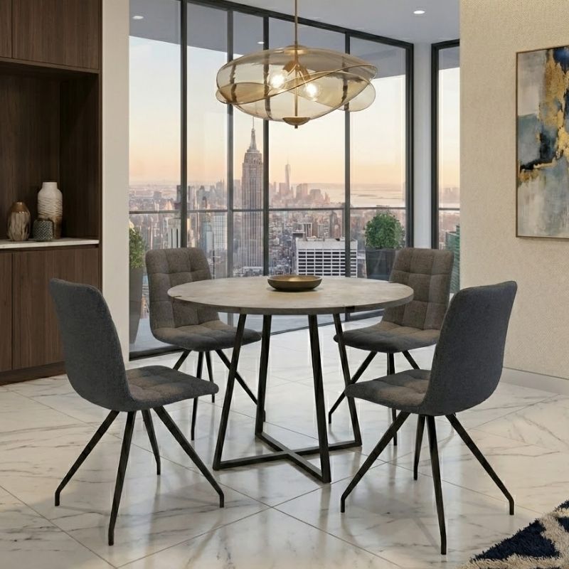 Σετ τραπεζαρία 5τμχ Rubes - Bianca χρώμα γκρι σκυροδέματος - γκρι Ø100x78εκ.