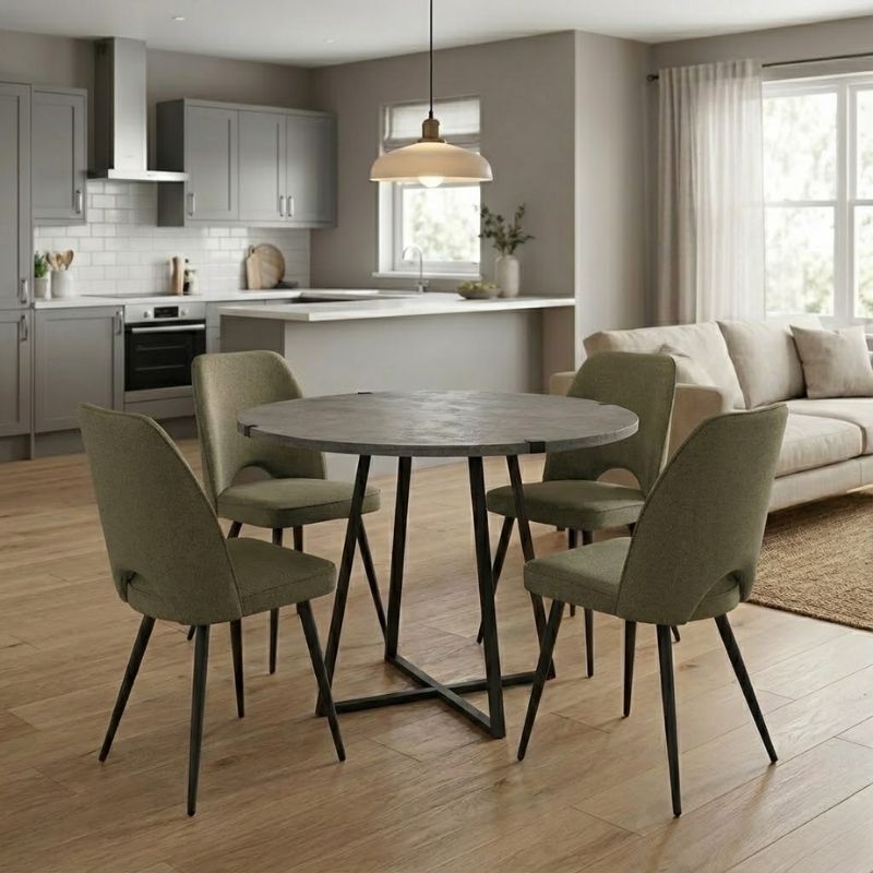 Σετ τραπεζαρία 5τμχ Rubes - Christy χρώμα γκρι σκυροδέματος - λαδί Ø100x78εκ.