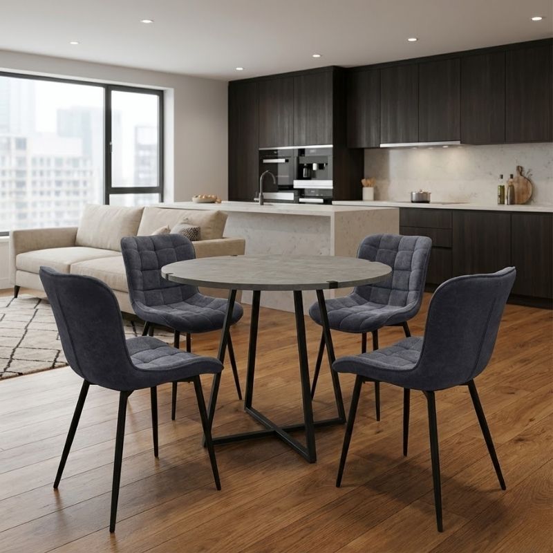 Σετ τραπεζαρία 5τμχ Rubes - Chiara χρώμα γκρι σκυροδέματος - ανθρακί Ø100x78εκ.