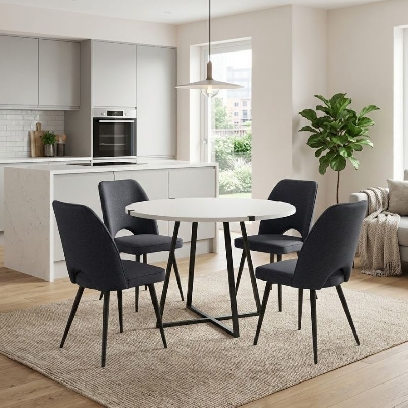 Σετ τραπεζαρία 5τμχ Rubes - Christy χρώμα λευκό - ανθρακί Ø100x78εκ.