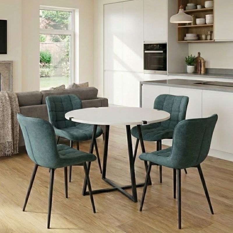 Σετ τραπεζαρία 5τμχ Rubes - Chiara χρώμα λευκό - πράσινο Ø100x78εκ.