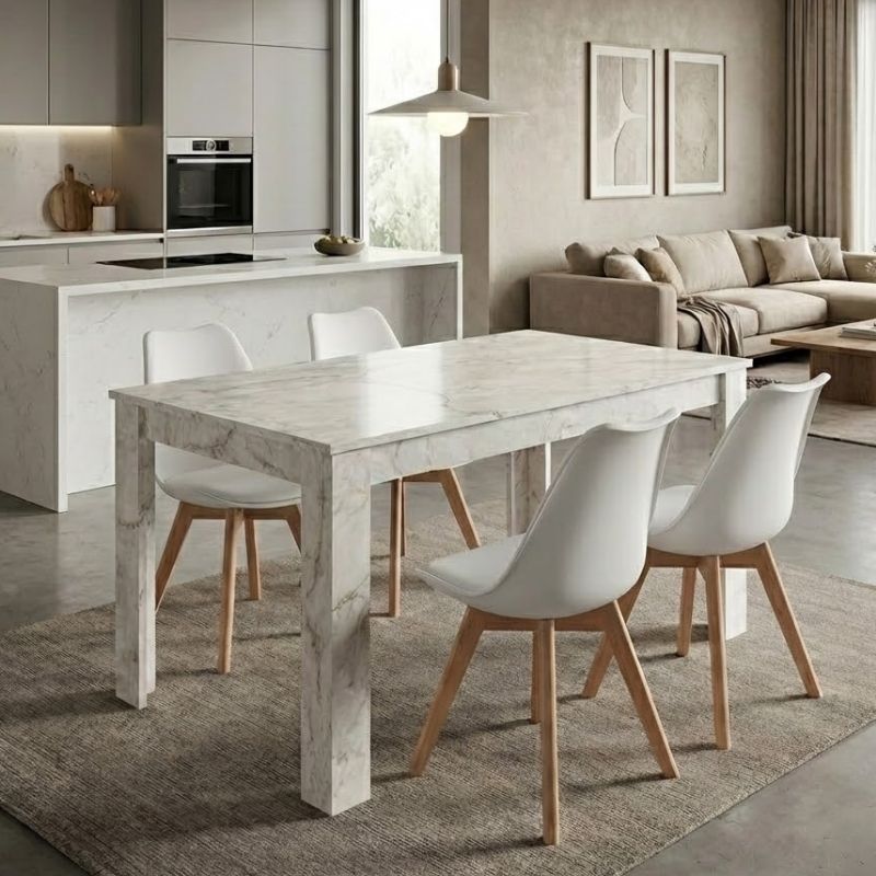 Σετ τραπεζαρία 5τμχ Darlen - Viva χρώμα λευκό εφέ μαρμάρου - λευκό/φυσικό πόδι 125x72x74εκ.