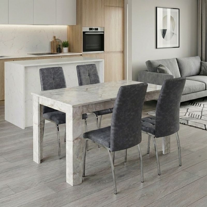 Σετ τραπεζαρία 5τμχ Darlen - Alma χρώμα λευκό εφέ μαρμάρου - γκρι 125x72x74εκ.