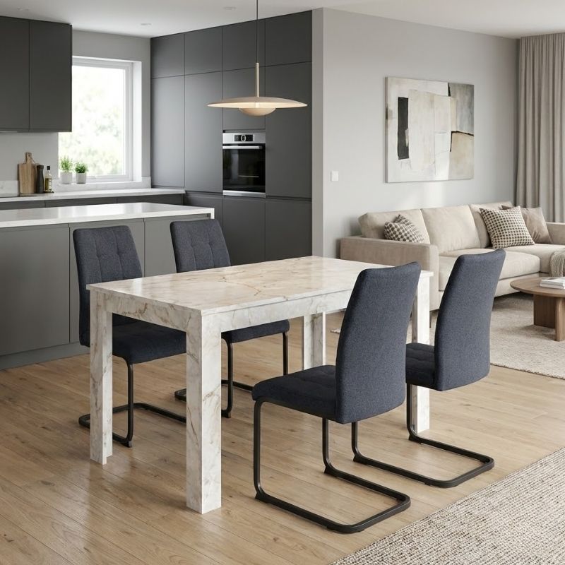 Σετ τραπεζαρία 5τμχ Darlen - Laura χρώμα λευκό εφέ μαρμάρου - ανθρακί 125x72x74εκ.