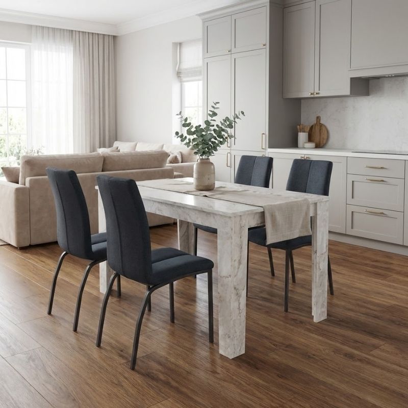 Σετ τραπεζαρία 5τμχ Darlen - Fina χρώμα λευκό εφέ μαρμάρου - ανθρακί 125x72x74εκ.