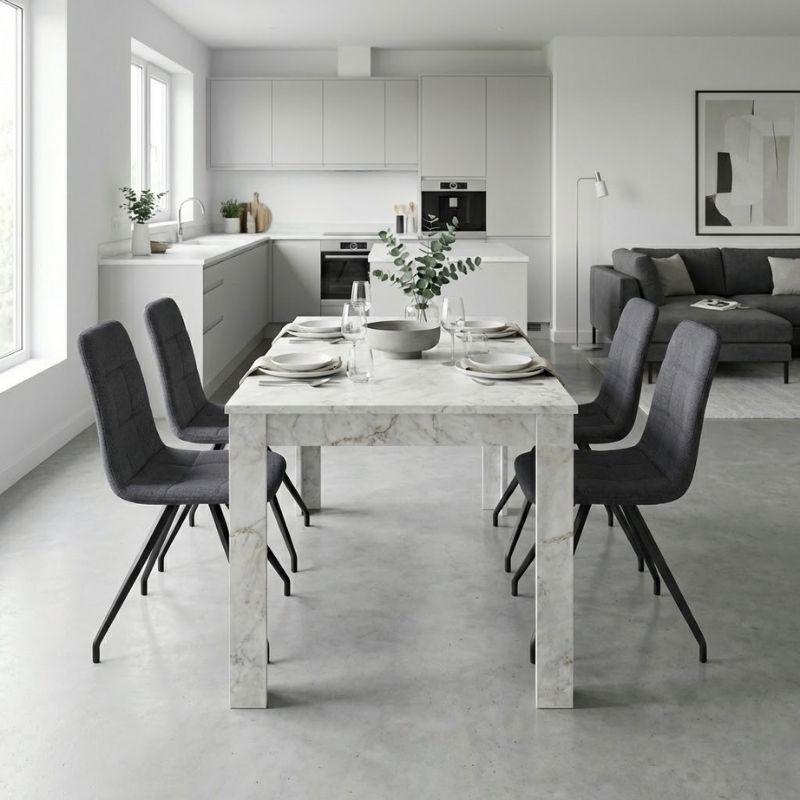 Σετ τραπεζαρία 5τμχ Darlen - Bianca χρώμα λευκό εφέ μαρμάρου - γκρι 125x72x74εκ.