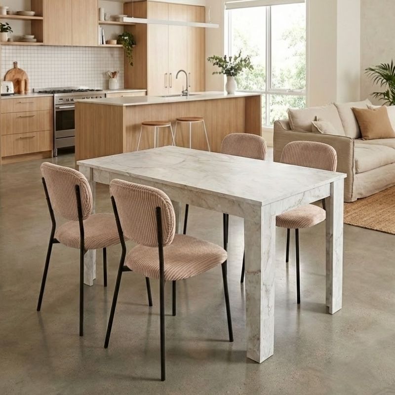 Σετ τραπεζαρία 5τμχ Darlen - Kevin χρώμα λευκό εφέ μαρμάρου - μόκα 125x72x74εκ.