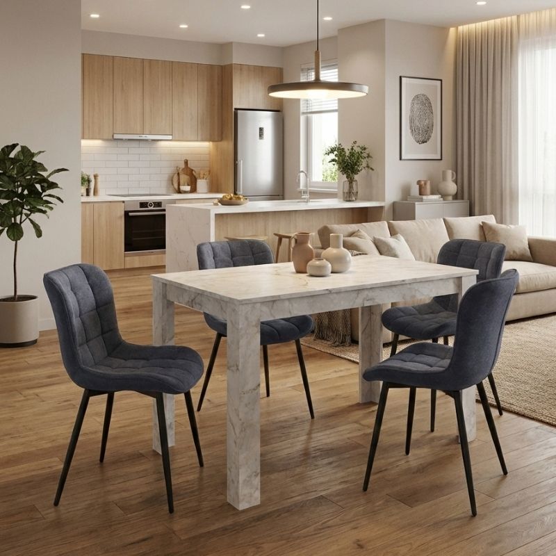 Σετ τραπεζαρία 5τμχ Darlen - Chiara χρώμα λευκό εφέ μαρμάρου - ανθρακί 125x72x74εκ.