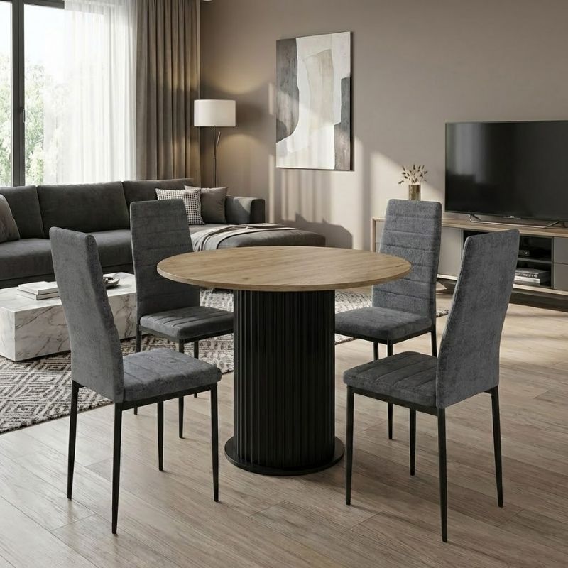Σετ τραπεζαρία 5τμχ Bohema - Rosa χρώμα μαύρο/sepet oak - γκρι Ø90x77,7εκ.
