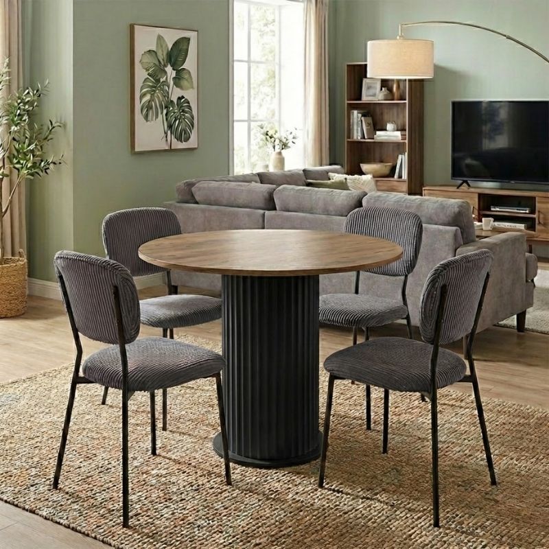 Σετ τραπεζαρία 5τμχ Bohema - Kevin χρώμα μαύρο/sepet oak - γκρι Ø90x77,7εκ.